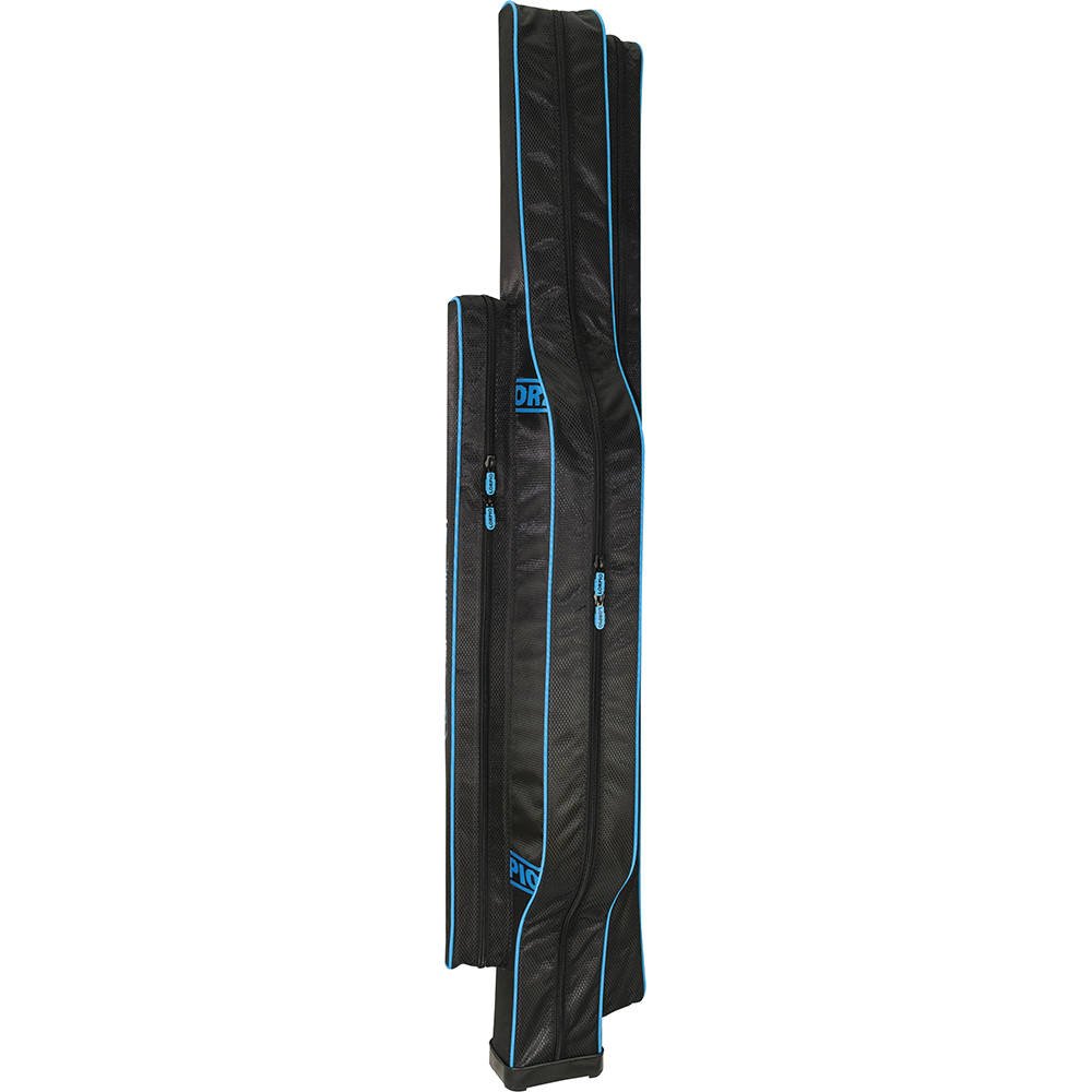 Благодаря специально разработанной внутренней перегородке чехол вмещает 3 удилища с катушками, сохраняя при этом ширину стандартной сумки на 2 удилища. Внутренние поролоновые разделители и застежки-липучки защищают не только удилища и катушки, но также леску и комплект с поплавком или кормушкой. В чехле также есть два внешних отделения для аксессуаров. Твердое, легко очищаемое дно защищает от влаги, когда вы ставите чехол вертикально.